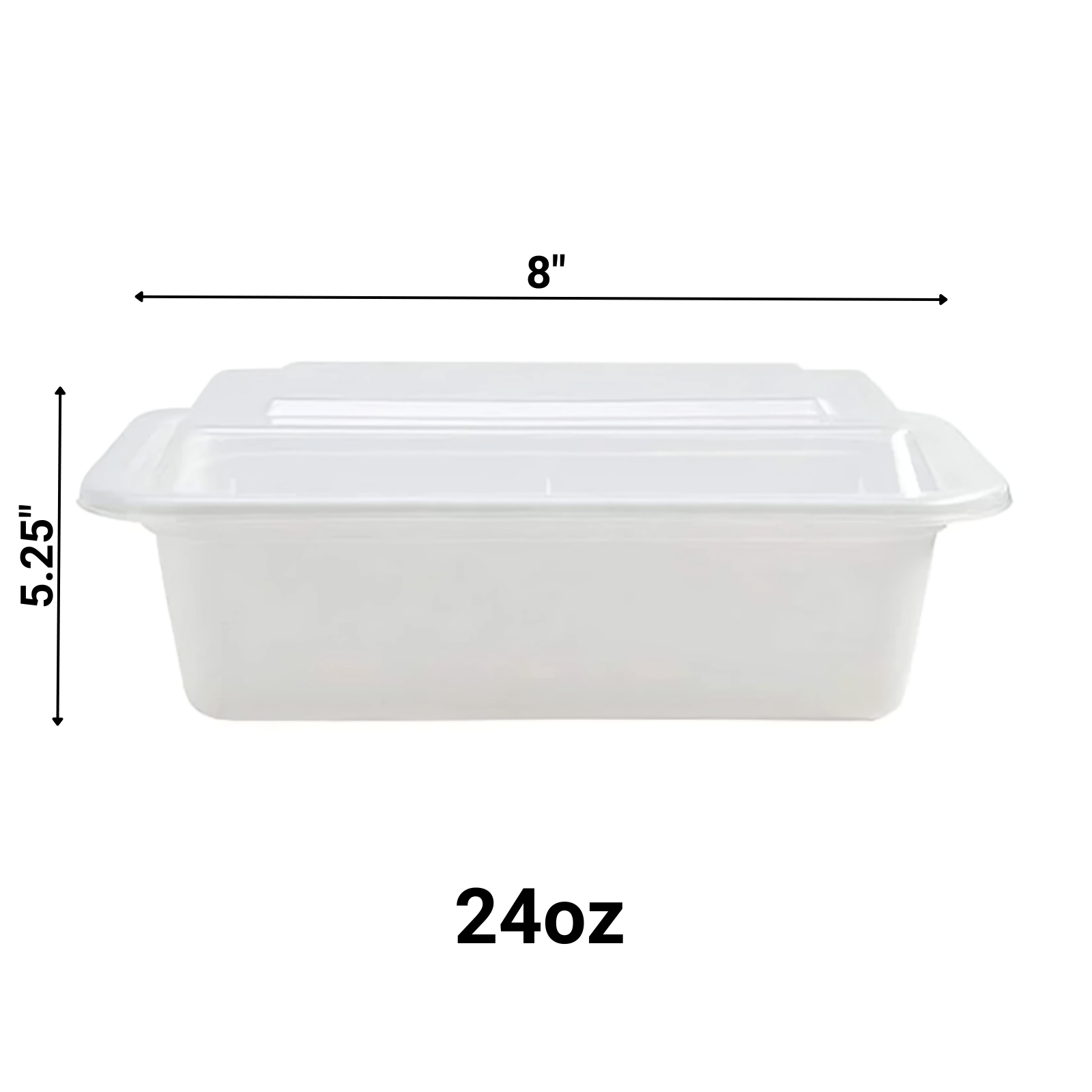 Introducing 24oz. White Microwaveable Containers. Versatile sizes and shapes, including 8″ X 5.25″ Rectangular shape Complete with lids, crafted from durable white plastic. Perfect for any occasion, with competitive pricing and quality.