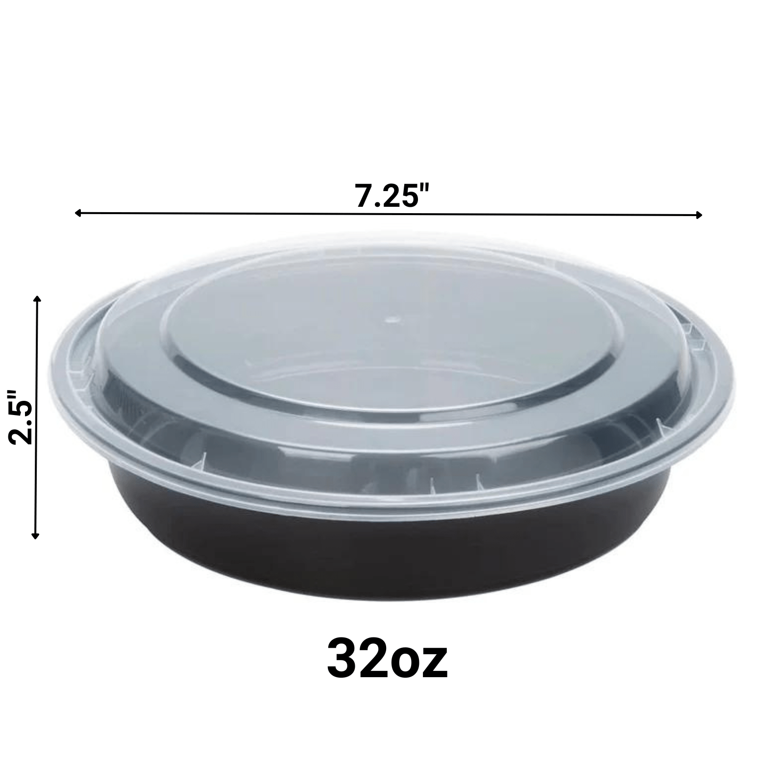 32oz. Disposable Round Meal Prep/ Bento Box Containers with Clear Lids