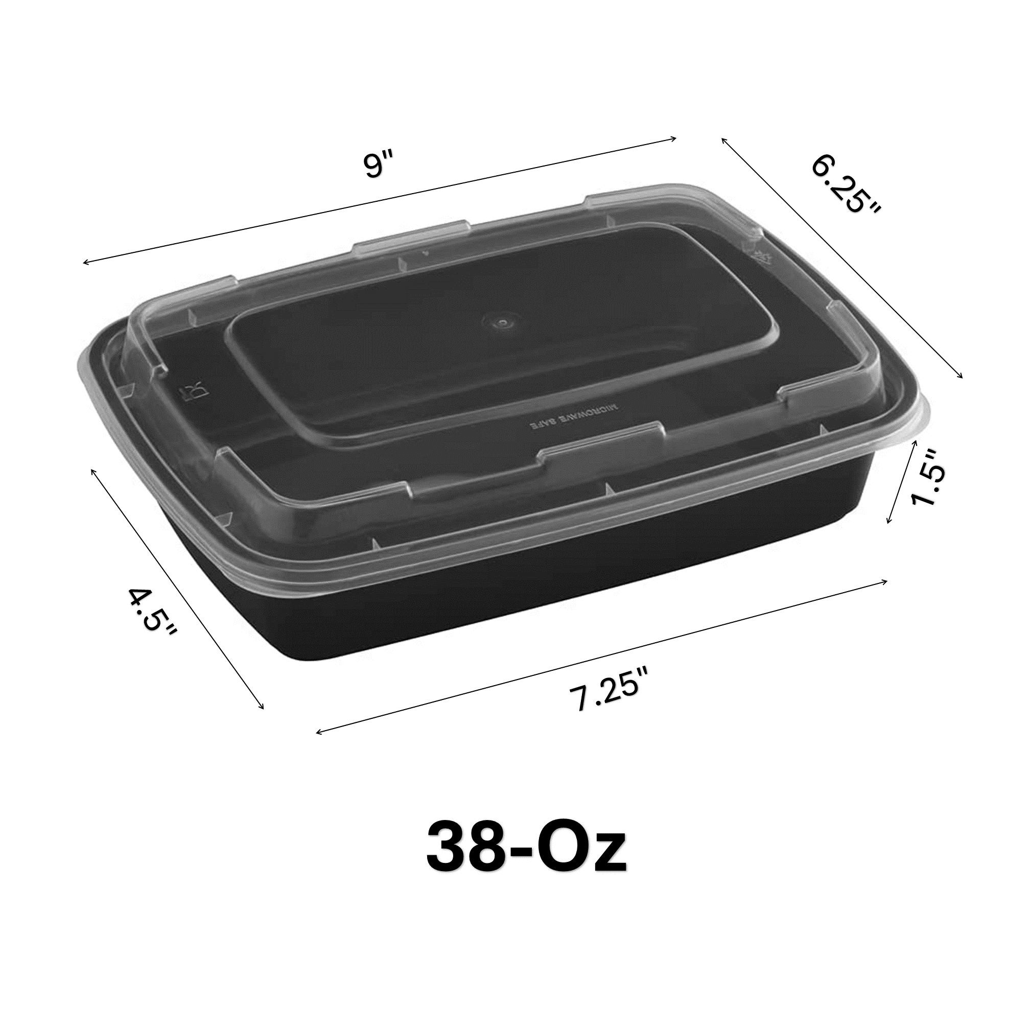 • CONVENIENT MEAL PREP: Our 38oz Black Rectangular Microwavable Container with Clear Lid streamlines take-out and meal prep tasks effortlessly.