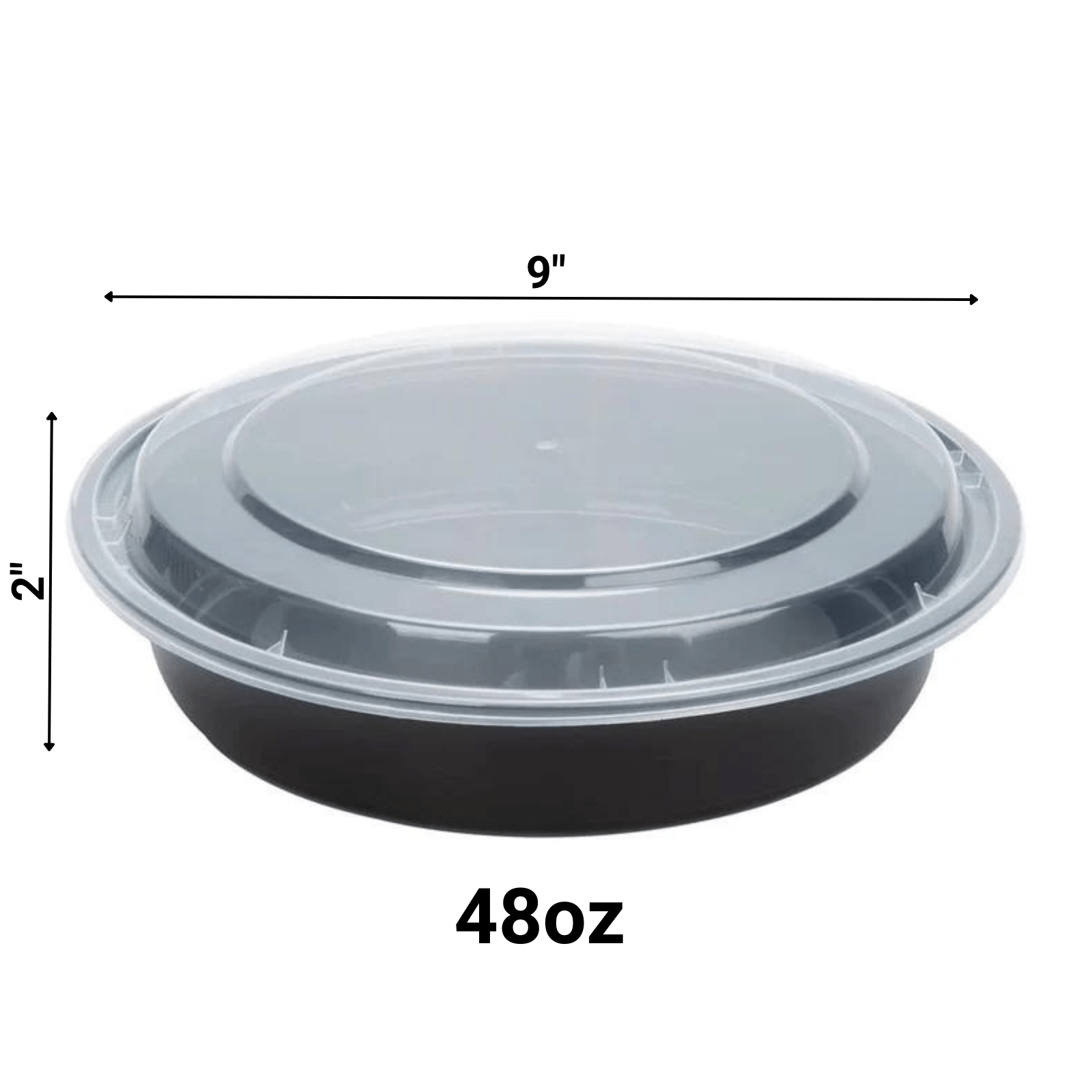 Introducing our 48 oz. Black Round Microwavable Container with Clear Dome Lid. It’s durable, microwave- and freezer-safe, BPA-free, and Kosher-certified. Made in China, it’s the epitome of convenience and quality.